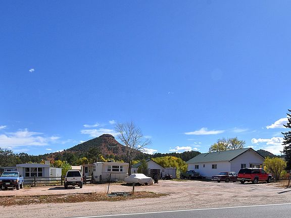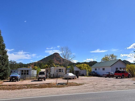 Perfect and central location right on main street of Town of Larkspur ripe for development; property includes three (3) addresses 9052, 9054 and 9056 Spruce Mountain Road and property in total features two occupied mobile homes (included) and a small single family home - each with city water and sewer as well as a well used presently for exterior uses but classified as 'domestic and livestock'.