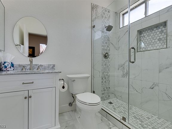 This stunning Cul De Sac home boasts 4 bedrooms, 3 baths plus a 3-car garage. This home sit on an oversized lot which has plenty of parking & no direct neighbors to the south giving an open feel with privacy! The recently remodeled kitchen & bathrooms feature sleek, contemporary finishes. A 5th bedroom could easily be added downstairs with access to a stylish bathroom equipped with a walk-in shower. The entrance boasts a glamorous double door entry & the vaulted ceilings with the desirable floor plan create a homey feel. The kitchen features white quartz, stainless steel appliances plus white cabinetry! Additional highlights include a fireplace, laundry shoot, wet bar and epoxy finished garage. The oversized primary bedroom includes double sinks, a separate tub/shower, and a walk-in closet. The quaint gated community is conveniently located near highway 215, the airport, restaurants, and shopping galore!!!!!!