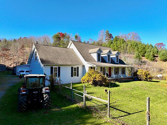 Welcome to the Hollywood Glace Farm! Situated on over 63 private acres in beautiful Monroe County, this unique property features a 3 bedroom, 2 bathroom home built in 1998 with a peaceful, pillared front porch, a fully fenced in front and back yard, multiple fresh water sources, and several outdoor buildings - providing tremendous potential for your next homesteading or farming adventure. The main ensuite bedroom is located on the first floor and a ramp on the back entrance makes this home handicapped accessible. Upstairs, the sizeable second and third bedrooms have carpet and built in window seats. The attached 2 car garage has a wood burning fireplace as an additional heat source and an unfinished loft room perfect for an additional bedroom or office space. There is an additional detached garage and a building/chicken coop behind the home, as well as a stream and a pond. The large parcel across from the home is perfect for raising livestock, as Laurel Creek trickles across the lot, it is fenced in, and includes a standing pole barn. There is an additional pond stocked with trout, blue gill, and catfish. Mineral and timber rights convey. This property is in need of some TLC and is being sold "as is". High speed internet and cable are available.
