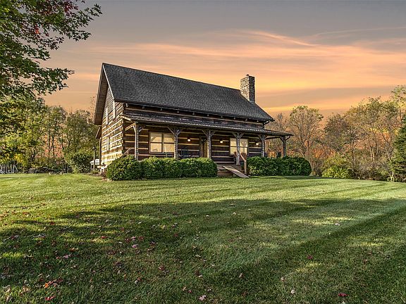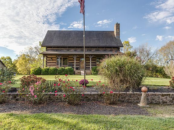 Discover rustic elegance in this beautiful log cabin set on 5 serene acres. This home features an inviting open floor plan highlighted by a stunning stone fireplace, perfect for cozy evenings. Expansive windows fill the space with natural light, showcasing the warmth and character of the log interior. Enjoy peaceful mornings or sunset views from the covered front porch. A three-car detached garage provides plenty of space for vehicles, storage, or a workshop. The perfect blend of comfort, craftsmanship, and country living — this property is a must-see! (Interior photos to be added)
