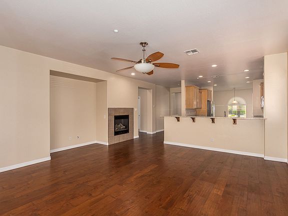 Beautiful and spacious 4 bedroom 2 bathroom home in Peoria with over 2,000 sq ft! Located just a short drive away from Lake Pleasant Towne Center with tons of dining, shopping, and entertainment options. This home boasts a large great room with sight-lines from front to back. The kitchen features stainless steel appliances, breakfast bar, eat-in kitchen. area and tons of counter space/storage. Living room has entertainment cubby and fireplace and large sliding glass doors that open up onto the covered patio out back. Huge master suite with walk in closet, dual sinks, and separate shower/tub. Low maintenance landscaping in front and back.