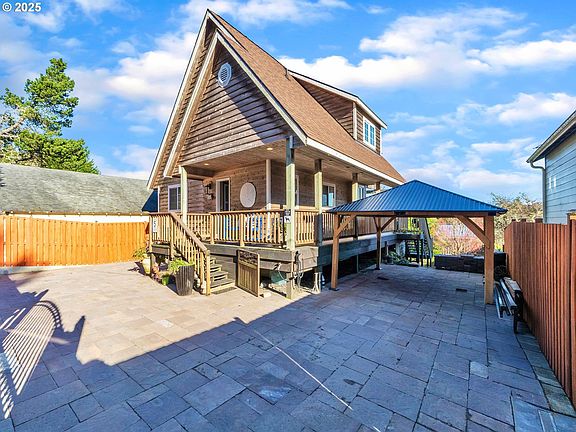 Are you looking for a truly unique, custom home on the coast, blocks from the water? Look no further! This home is on the market for the first time in its life. Filled with special touches like the vaulted and exposed beamed loft, wrap around porch, sliding barn doors, arched doorways, carved wood, and sweeping french doors, this beautiful home is fully updated, so leave the hammer behind! The kitchen sports granite counters, solid wood cabinets, and a gas range with a built-in warming oven and the living room features a floor to ceiling stone fireplace and reading nook. Upstairs, the master bedroom is the showstopper with tall, a-line exposed beams leading the way to french doors opening onto the second story porch. From here, you can enjoy the mature backyard landscaping or watch the sunset while enjoying your favorite beverage. This one is sure to go fast, so hurry in to view today!