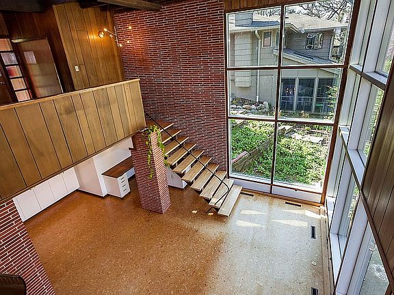 515.865.7601 for an in-person or virtual showing of this Mid-Century Modern home. Just steps from the bike trail and the perfect mix of original details and modern updates. 3BR/2BA with high, wood-beamed ceilings, exposed brick and built-in planters; hardwood, brick and cork floors; huge floor-to-ceiling windows - including two-story windows in the living area - making this space feel very open and bright. An over-sized wood-burning fireplace with copper surround is an absolute show-stopper! A second living area - the den - is on the back of the house and provides a bonus, multi-use space with access to the large backyard. A built-in home-office nook is tucked neatly under the floating stairs. The upper level has 3 bedrooms and a full bathroom with custom double vanity. The master bedroom has a wood feature wall, with an opening overlooking the main living area that can be closed for privacy. This home has updates throughout including driveway, roof, high-efficiency furnace and A/C with web-connected thermostat, water heater, radon mitigation system, updated electrical and a new electrical panel, built-ins, light fixtures, Vivant alarm system, stainless steel appliances and washer/dryer included. The two-car, extra deep attached garage has lots of storage and space for a workshop - perfect for all of those bicycles! Email, text or call for a showing. Dalmburg@gmail.com or 515.865.7601