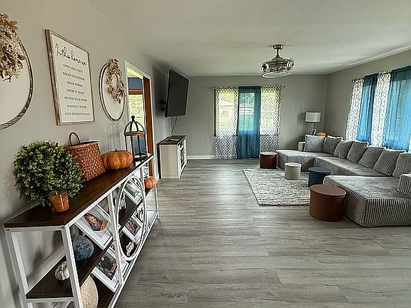 This 3 bed, 2 bath, 1,963 sq foot home is ready to be moved into and make a home. Split foyer home has 2 living spaces and brand new Charleston Oak luxury water proof vinyl plank flooring throughout the home, all new trim and paint. All new kitchen cabinets (klearview brand) with black industrial drop in sink, new sliding glass patio door that goes to a newly stained deck with a porch swing installed under it! New fridge (purchased June) and stove purchased (May) with warranties, central air, roof, garage door and siding new within the last 5 years, concrete 2 stall garage with drain and has 2 garage door openers, front door has a new keypad by sifely that is linked to your phone and has keypad for easy access. Ring camera and spotlight camera also linked to your phone stay with two chargers as backups with the home! There are 4 tv’s mounted in the home: 2-75" tv in both living room areas, 55" in large bedroom and 43" in the smaller room all stay. There is a door that divides the upstairs & downstairs that can be put back on located under the stairs, the home has new fixtures in some rooms, all screens to windows located under the stairs as well. The décor and pots seen outside is included as well. All appliance stay with the home.