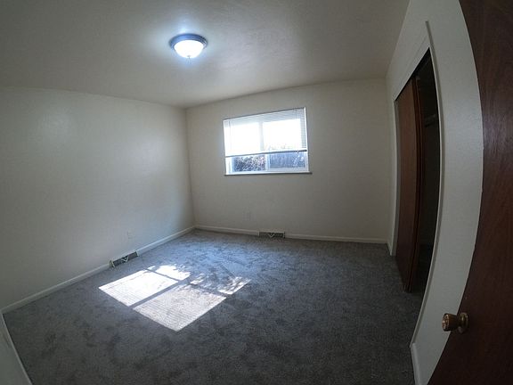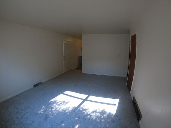 This ground level apartment features carpet throughout and large newer windows. The kitchen is secluded from the rest of the apartment, and includes an electric range, vinyl flooring, and wood cabinetry. The larger bedroom will be to the right of the hallway, with the smaller bedroom and full bathroom to the left. On-site coin operated laundry and off street parking available.