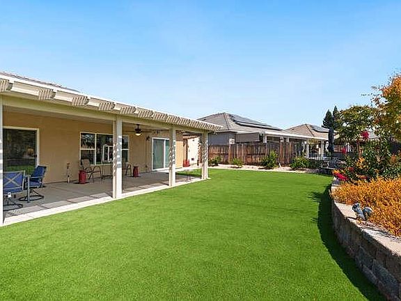 Beautifully Maintained Home in Highly Desirable Castle Oaks! This stunning 3-bedroom, 2-bath residence blends comfort, style, and efficiency in one of Ione's most sought-after neighborhoods. The open floor plan features laminate wood flooring, plush carpeting, recessed lighting, and fire sprinklers for peace of mind. The modern kitchen offers generous counter space and quality appliances, ideal for cooking and entertaining. The spacious primary suite includes a soaking tub and walk-in shower with grab bars. Enjoy California living on the covered patio with ceiling fans perfect for relaxing or entertaining. The backyard is a true retreat with two 6x10 sheds, many citrus trees, and room for gardening, pets, or play. Energy efficiency shines with 20 solar panels both owned and leased for long-term savings. Close to schools, shopping, dining, and Gold Country recreation, this home offers peaceful community living at its finest. Don't miss out schedule your showing today!