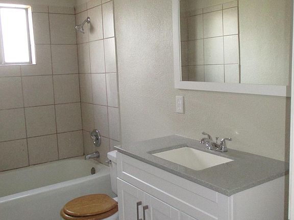 Completely remodeled with new appliances, flooring, paint, texture, etc. Fridge, electric stove, microwave, stackable washer/dryer included. Refrigerated a/c. Blinds throughout. The entire cul de sac has been remodeled inside. Exterior has new paint and stucco. Owner pays water, garbage, sewer. Tenant pays electric & gas.
