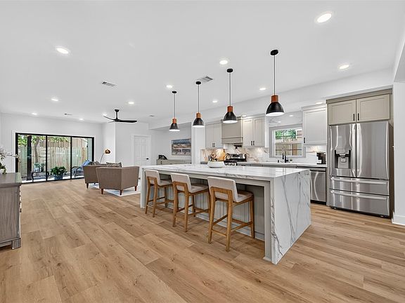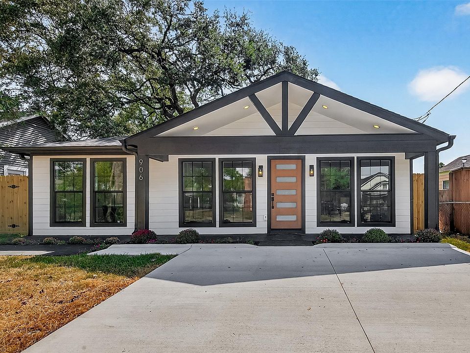This beautifully reimagined Lindale Park gem offers over 2,000 sq ft with 3 bedrooms and 3 full baths. Step inside to soaring vaulted ceilings and an open, flexible layout—perfect for living, dining, or play. The chef’s kitchen is the heart of the home, featuring a massive waterfall island, gas range with pot filler, and custom cabinetry. A bonus full bath off the laundry room with a spacious shower doubles as a guest or pet bath. Two secondary bedrooms are generously sized, while the primary suite impresses with a walk-in closet and dual-control spa shower. Enjoy a covered back patio, fenced yard, and incredible curb appeal. Experience the charm of Lindale Park—the “Hidden Jewel” of Houston—with easy access to downtown, rail line, and major highways.