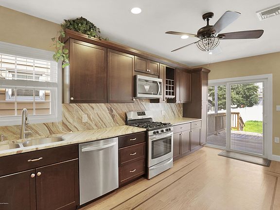 Completely remodeled & renovated 3 bedroom, 2 full bath architecually shingled shore colonial. Recessed Lighting thruout! Stunning, modern gourmet Stainless Steel kitchen w/recessed & decorative lights. Kitchen is adorned w/inlaid hardwood floors & granite counter tops w/matching back splash. Multi-seat granite counter top adds to kitchen ambiance. Brilliant stone work in both full baths lends an elegant luxury to your shore living experience. Huge master bedroom suite w/walk in closet & shining hardwood floors is the highlight of the 2nd floor. Two other generous sized hard wood floored bedrooms with ceiling fans compliment the second floor. Another designer stone work full bath complete the 2nd floor. A nice deck overlooks a Private fenced backyard! Don't wait to see this gem of a house!