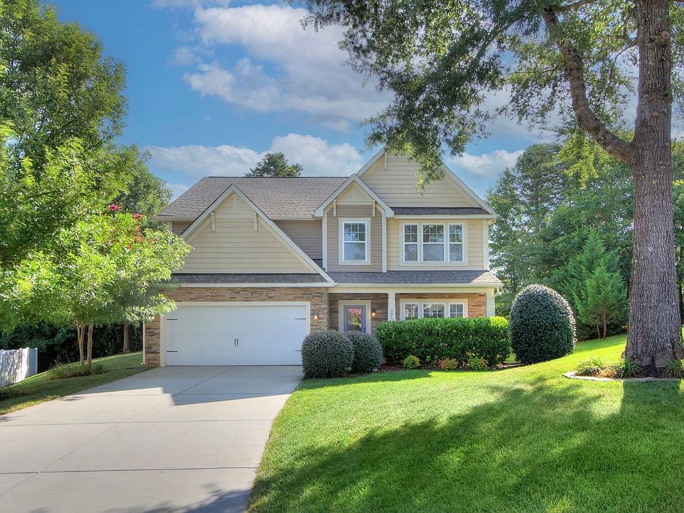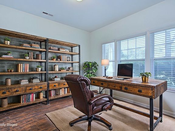 Home shows like new. Home sits at end of quiet cul de sac on oversized lot. Located in Regent Park offering quick access to Charlotte and surrounding areas. True Homes Riley model is beautifully upgraded with extensive molding through out. Wide plank hardwood floors on main level with hardwood staircase. Office and formal dining room. Large kitchen with island, and abundant cabinets with under cabinet lighting. Dry bar and large walk in pantry. Second floor offers an oversized master with large walk in his and her closets, garden tub and tiled walk in shower. Second floor also hosts 3 additional bedrooms, full bathroom and large bonus room and 2nd floor laundry.