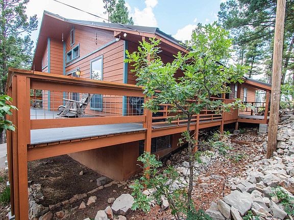 Great Mountain Home that is located at one of the higher points in the village and on the "sunny" side of the mountain. Check out the path from the house that leads to the Lincoln National Forest, which is within yards of the back property line. The home features 3 Bedrooms and 2 Full Baths all on the main level. Vaulted ceilings in the open concept kitchen/living room area, with tiled and wood flooring and the three bedrooms have carpet. The bottom floor of the home is finished out and could be utilized as another living space or family entertainment room, plus there is another room that could be used as a 4th Bedroom downstairs. This home offers amazing decks and windows to enjoy the views, mountain air, sunrises and sunsets!!! Great back patio area where you can look out into the Lincoln National Forest, enjoy the wildlife and cool mountain summer days. There is also a workshop with power. Owner Financing Possible w/acceptable terms. Don't wait! Schedule your showing today!