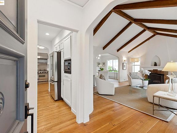 New Listing. Elegant Glenview Mediterranean perched on a sun-drenched hill with refined architectural details. The experience begins in the light-filled living room with wood beamed ceiling, custom hearth and a large arched picture window. The living room flows seamlessly into the formal dining room. The chef’s kitchen with peninsula island enjoys and easy connection to the dining room making entertaining a breeze. The kitchen features stainless appliances and ample counterspace for the chef to create. An adjoining eat-in area offers the perfect space to start your day. There are two spacious bedrooms and a conveniently located hall bathroom on the main level. One bedroom includes French doors that open to the charming backyard. Upstairs, you’ll find two additional bedrooms, each with Bay views and a second bathroom. Completing the home is a large storage room, laundry area and interior access to the garage. Convenient to shops, restaurants, parks and transportation. Open Sunday 2-4PM