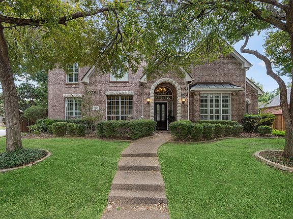 Stunningly updated 4 bedroom, 3 bath with office Allen home situated on a oversized-corner lot, just minutes from a top-rated Allen ISD elementary school. The backyard retreat features a pool-spa with waterfall, outdoor kitchen with built-in grill, fire pit, custom arbor, and extended patio. Indoors, you’ll find rich wood floors, plantation shutters, a beautifully remodeled primary bath, private study with built-ins, custom entertainment center, and a newly renovated kitchen. Lush front and back landscaping with raised stone beds adds to the curb appeal. This energy-smart home includes a tankless water heater, solar screens, drip-irrigated beds, EV charging outlet, and solar panels (which may convey with the right offer at no cost to new buyer). A brand-new roof was installed in 2023. Nestled in a premier golf course community lined with mature trees and scenic streets, residents enjoy world-class amenities: two resort-style pools, tennis and pickleball courts, clubhouse, volleyball, playgrounds, stocked lakes, a 2.3-acre park, nature preserve, and miles of walking and biking trails. A spacious backyard and vibrant neighborhood make this an ideal setting for everyday living and entertaining alike. 3D tour available online!