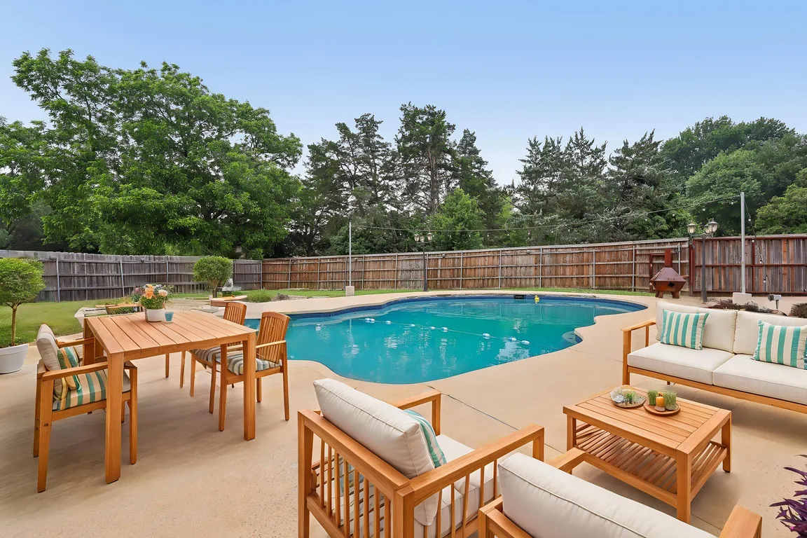Pool partiesCozy fireplaceOutdoor spaceUpdated flooringSeparate dining roomBuilt-in buffetSunny breakfast room