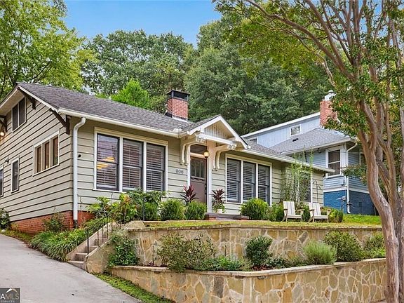Craftsman Bungalow with Elevated Curb Appeal and Intown Access. Set above street level, this 1930s Craftsman bungalow sits on one of Virginia Highland's most desirable blocks. Timeless architecture, thoughtful updates, and unbeatable intown access come together in this Virginia Highland gem. A newly constructed retaining wall frames the front yard with professional landscaping, integrated lighting, and irrigation. Inside, original hardwood floors, high ceilings, and detailed crown molding create a warm atmosphere. Oversized windows in nearly every room fill the home with natural light. The living room centers around a gas fireplace and connects to a versatile bonus room, ideal for a home office or den. A dining area lined with windows leads into the renovated kitchen with classic shaker cabinetry and updated finishes. Two bedrooms and a refreshed full bath complete the main level. Upstairs, a spacious loft offers flexibility as a third bedroom, rec room, or office with its own full bath. The screened porch and grilling patio overlook a fully fenced backyard, ideal for entertaining or unwinding. An unfinished basement and two attics provide additional storage space. Rare for the neighborhood, the property includes off-street parking via both driveway and alley access for up to two vehicles. Located just two blocks from the Beltline and a short walk to Ponce City Market, Piedmont Park, and downtown Virginia Highlands, the home also offers walkability to neighborhood favorites like Murphy's and Highland Tap, plus proximity to top-rated schools. Highland View is a sought-after street known for its community spirit, hosting Porch Fest, Halloween block parties, and seasonal festivals. Move-in ready with expansion plans available, this home offers both immediate comfort and long-term potential.