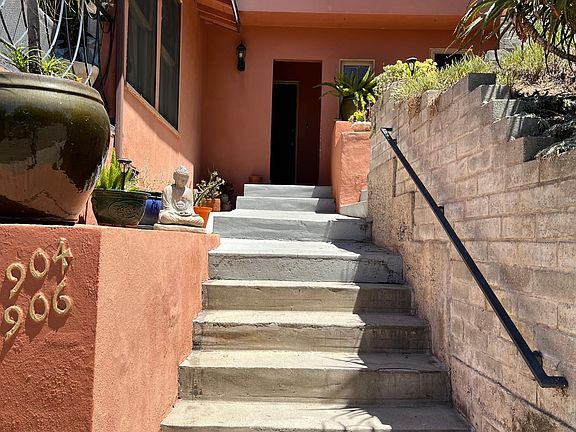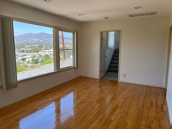 Beautifully maintained 2 bedroom upper apartment in a classic Mid-Century duplex. Panoramic city and mountain views Multi-level floor plan Light filled living room Formal dining room Refinished hardwood floors Full bath with vintage tile Ample kitchen with tile floor Stove, refrigerator, microwave, washer and dryer included 1 car garage Backyard terrace with spectacular views No smoking // no pets