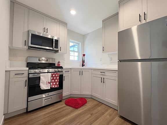 Freshly painted wallsTiled bathroom floorsStainless steel appliancesRecessed lightingLaminate flooring