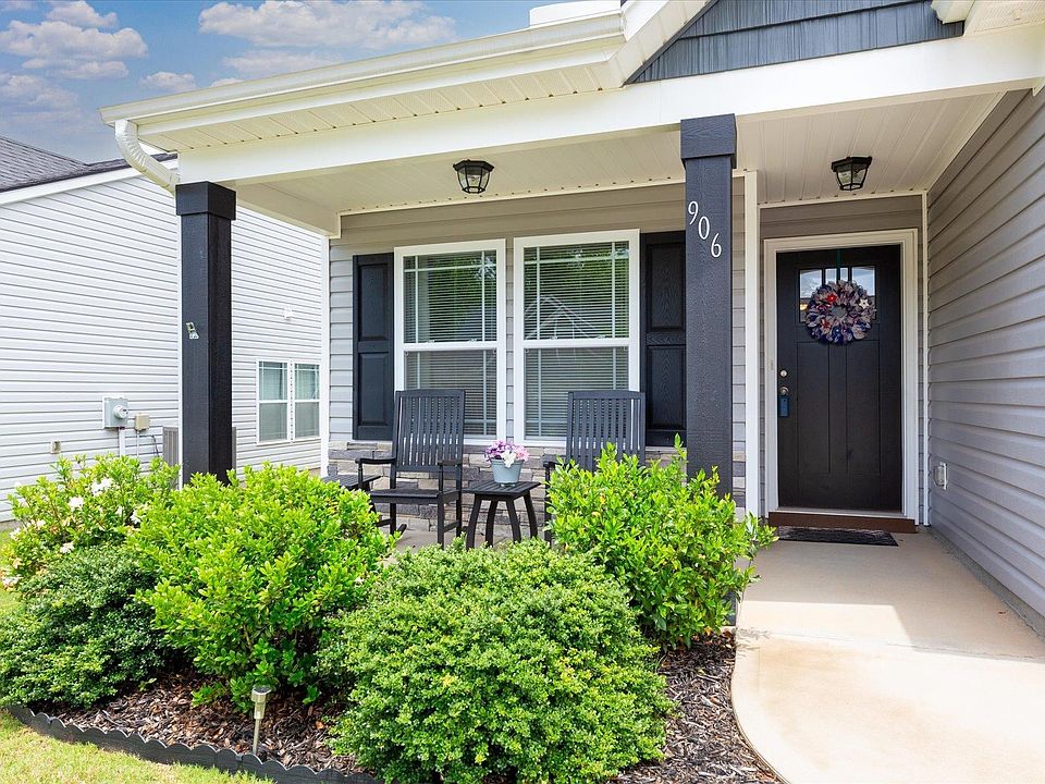 Welcome to 906 John Thomas Way, a charming home nestled in the desirable Orchard Crest neighborhood by Enchanted Construction. Situated on a quiet cul-de-sac, this beautifully maintained 3-bedroom, 2-bathroom home offers 1,454 square feet of thoughtfully designed living space, plus a dedicated office/study and a spacious walk-in laundry room. Inside, you’ll find elegant finishes including crown molding with ambient rope lighting and a trey ceiling in the primary suite. The open living area features a cozy gas fireplace and an extra TV outlet for flexible furniture placement. The kitchen is both stylish and functional with a subway tile backsplash and modern appliances. Step outside to a beautifully landscaped backyard complete with a peach tree, raised vegetable garden, a 12x12 covered patio with ceiling fan, and an additional 10x12 concrete pad—perfect for grilling or entertaining. Don’t miss this opportunity to enjoy peaceful living in one of Greer’s most sought-after communities!