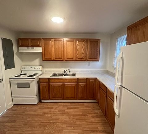 All electric, central heat/air, new flooring throughout and carpet in bedrooms.