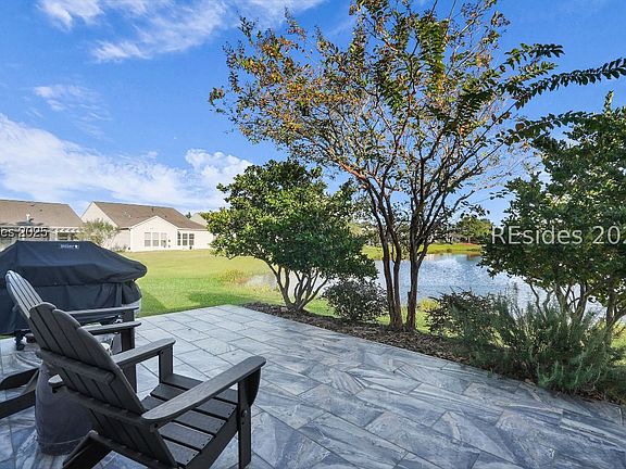 Nestled at the end of a quiet cul-de-sac in Sun City North, this 3 bedroom, 3 bath Martin Ray with loft offers serene water views in a tranquil setting. The gourmet kitchen is custom-designed for both function and elegance, with a five-burner gas range, granite countertops, under-cabinet lighting, spacious pantry, and oversized island. Inside, you'll find warm wood flooring, a gas fireplace, a Carolina room, a den with French doors, laundry room w/extra cabinets, countertop & sink, and a primary suite that includes a tray ceiling and custom walk in closet. The second floor includes a versatile loft, storage closet & a guest suite/bathroom making it ideal for overnight visitors. The extended garage includes a dedicated golf cart bay and walk-up attic storage. The outdoors impresses with a covered front porch, a four-seasons room with tile flooring, and an extended paver patio overlooking the lagoon perfect for entertaining or quiet relaxation.