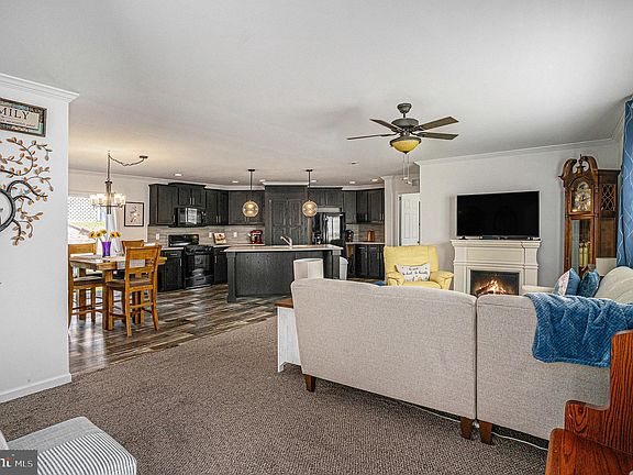 [New photos and 3D Virtual Tour are now posted!] You will be dazzled by this home's rich luxury and style when you step inside the HUDSON Double model. The open floor plan in the main "great room", which houses the entryway, the living room, the kitchen, and dining room, provides great flow and spacious freedom. At just over 1600 sqft, this is not a small home! Handsome, dark wood cabinetry abounds, providing tons of storage and convenience. The kitchen and dining areas feature stylish, rustic patterned LVP flooring. Don't be fooled by the faux cupboard doors in the kitchen: open them up and you'll be delighted to find that they hide a huge walk-in pantry closet. Check out the wet bar and dual wine/beverage refrigerators in the dining area -- perfect for entertaining! From there, a large sliding glass door opens out to the relaxing rear patio. The owner's private suite, just off the kitchen, includes a walk-in closet and a luxurious spa-like bathroom with oval soaking tub, built-in shelving, large standing shower, and dual vanity sinks with light-up mirrors. At the opposite end of the house, are two additional bedrooms, a built-in cabinetry desk for easy home management, a second full bath, and a laundry and utility room, which features a helpful built-in organizer wall. Ample driveway parking and storage shed round out this move-in ready home. The "Duraskirt" concrete foundation provides added stability and insulation benefits, which will save you money on heating (propane) and cooling and serve as a solid base for many years! This home provides easy one-story living and requires very little maintenance, and it is just two years young! The Green Hill community, which is pet friendly!, is only 1.5 mile from the beautiful Green Lane Park - a large, natural, multi-use recreational area. New price! Seller is motivated!