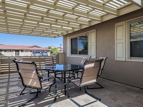 Come and see this freshly remodeled 2 bed, 2 Bath, 2 car garage home in Leisure World one of Mesa's most desirable 55+ gated communities. As you approach the home, you're greeted by a travertine walkway and matching travertine paver courtyard—an inviting space ideal for entertaining friends or enjoying a peaceful meal outdoors.