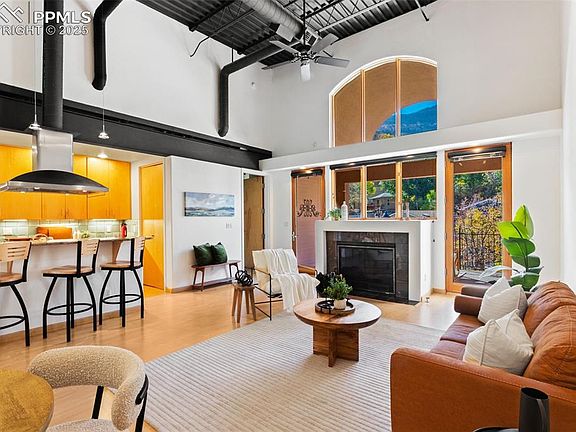 Welcome to this stunning 3-bedroom, 3-bath residence perfectly situated in the vibrant heart of historic Downtown Manitou Springs. This rare find blends charm, convenience, and modern comfort—steps away from eclectic shops, restaurants, breweries, and the best of the downtown lifestyle. Enjoy two enclosed balconies—one overlooking the tranquil creek and the other facing bustling Manitou Avenue, offering the perfect spot to soak in local parades, live music, and community events like the Coffin Races and Carnivale—all from the comfort of home. Inside, you’ll find two spacious primary suites, each with unique natural stone bathrooms, new lush carpet, and abundant built-in shelving in closets. The bright, open-concept living area features industrial accents, tall ceilings, and a cozy gas fireplace. The gourmet kitchen is designed for both style and function, complete with an island, gas stove, and range—ideal for entertaining. Outdoor enthusiasts will love the proximity to the Manitou Incline, Garden of the Gods, Barr Trail, and Red Rock Canyon Open Space. Just a 15-minute drive gets you to Downtown Colorado Springs, or head west to Cascade and Woodland Park for a mountain escape. Steeped in local history, this building once served as the Manitou Mineral Water Company Bottling Works, where mineral water from the Navajo Spring was bottled—adding a touch of heritage to this truly unique home. Additional highlights include: Private street access to Manitou Avenue from the community’s second floor (key exit/code entry for privacy), three coveted parking spaces (two in the attached garage plus one designated outdoor space within the gated community), large private storage area in the garage for each unit, elevator access, community courtyard, and exercise room, and lastly the laundry is conveniently located in the primary suite with dual walk-in closets.