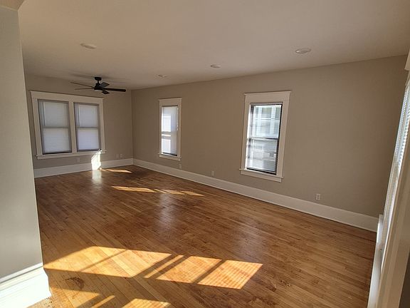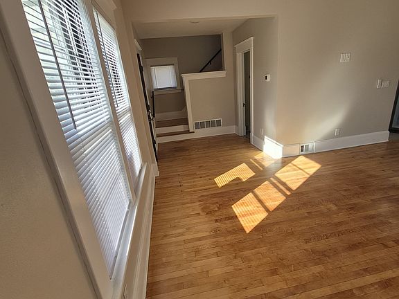 The floor plan has 3 bedrooms and 1 bathroom on the second floor. Kitchen, living-dining room, 1 bathroom on the first floor. And a finished basement with 1 bedroom and1 bathroom-laundry room. Forced air AC unit and ceiling fans in the bedrooms keep the place comfortable all summer long. Plenty of off-street parking. Fenced in large back yard, Pets welcome!