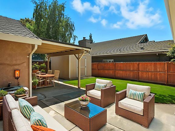 Move-in ready single-story home in the Creekside neighborhood! This thoughtfully updated property offers newer flooring, dual-pane windows, an updated roof, HVAC system, and water heater. The flexible layout includes a separate family room with a fireplace, a formal living area, and a extra room ideal for a home office, fitness space, or playroom. The spacious primary bedroom features hardwood flooring, a walk-in closet, and an ensuite bathroom. Additional features include plantation shutters, a landscaped corner lot with RV access, covered patio, and storage shed. The finished 2-car garage includes epoxy floors and built-in storage cabinets. A great opportunity to own a home offering both function and location. (backyard photos with lawn are virtually staged)
