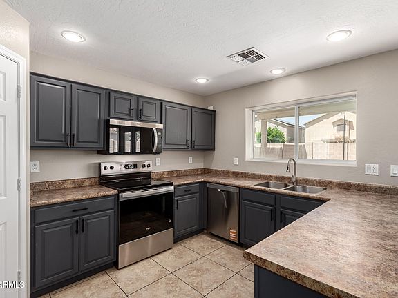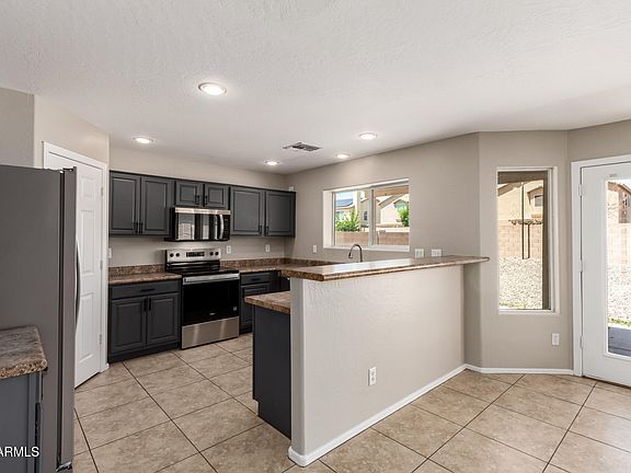 Fresh remodel on this beautiful 4-bedroom, 2.5-bath two-story home with OWNED SOLAR in the highly sought-after Acacia Crossing community! NEW carpet, appliances, paint, fixtures & stone in back yard. Featuring a 2-car garage & a low-maintenance front yard & back yard. Step inside to a charming formal living room with a stylish brick-accented wall, a spacious open-concept family and dining area with French doors leading to the backyard. The kitchen offers recessed lighting, ample cabinetry, a walk-in pantry & extra prep space and seating. Need a home office or extra bedroom? The downstairs den with double doors is perfect as a 5th bedroom or flexible workspace. Located near shopping & entertainment in one of the fastest growing areas in Maricopa County, Buckeye. The expansive backyard includes a full-length covered patio and is a blank canvas ready for your dream outdoor oasis.