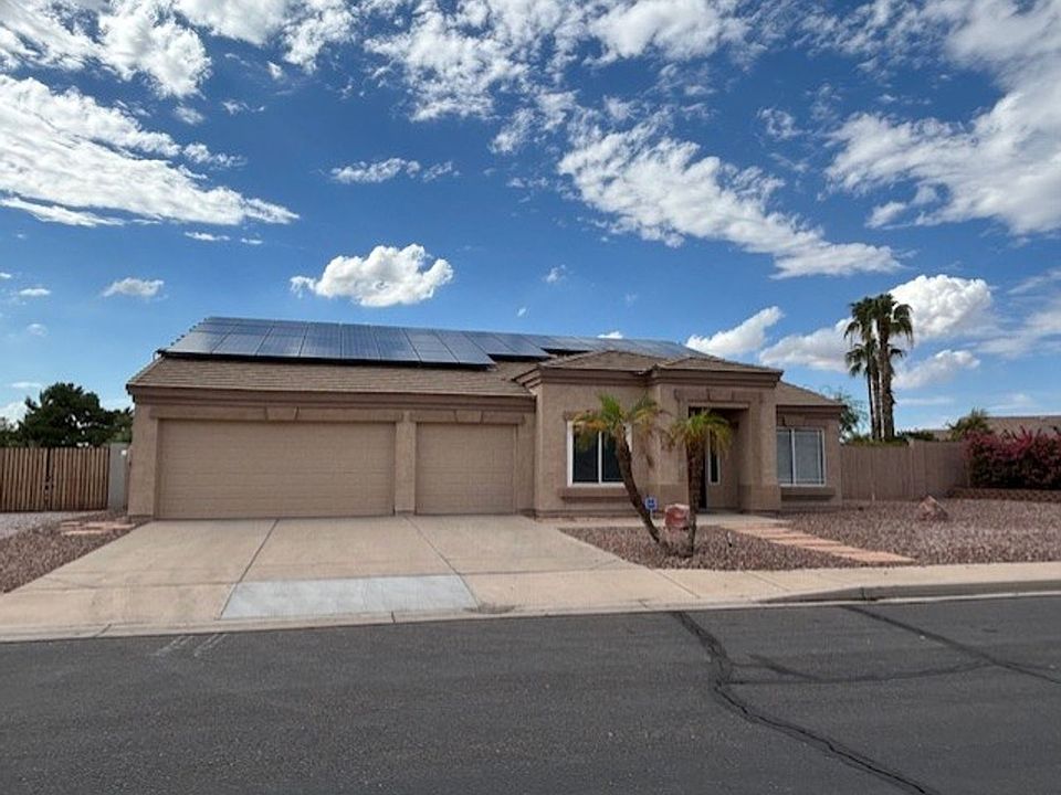 LOVELY PARKWOOD RANCH SINGLE LEVEL HOME APPROX 2,700 SQ FT WITH POOL AND LARGE BACKYARD COVERED PATIO WITH BUILIT IN BBQ AND FIREPIT. ALL NEW PAINT AND CARPET THROUGHOUT. SPLIT MASTER FROM OTHER BEDROOM ROOMS. FORMAL DINING AND FORMAL LIVING ROOM. GREAT ROOM OPEN TO HUGE KITCHEN AND KITCHEN ISLAND ALL NEW APPLIANCES GRANIT COUTERTOPS WITH CUSTOM BACKSPLASH TON'S OF CABINET SPACE. 4 BEDROOM PLUS OFFICE NICHE AREA AND 3 CAR GARAGE. POOL SERVICE AND LANDSCAPE INCLUDED IN MONTHLY RENT. HOME HAS SOLAR PANELS SO LOW COST SAVINGS ON POWER. RV GATE AND SIDE YARD HAS STORAGE ROOM ONSITE. EXCELLENT LOCATION WITH MOUNTAIN VIEWS IN MESA CLOSE TO 202 AND LOTS OF SHOPPING RESTAURANTS ETC. YOU WILL LOVE THIS HOME NORTH SOUTH FACING WITH PARKS THROUGHOUT COMMUNITY.