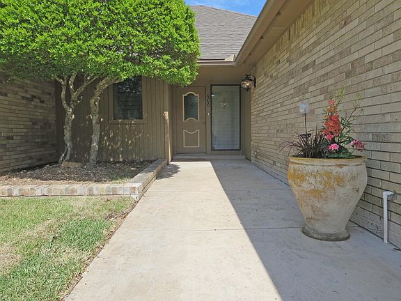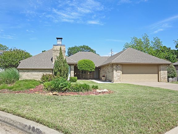Attractive home in PISD with lovely landscaping. As you enter the home you are greeted w/ views to the open great room w/ a rock fireplace and dining room, windows have plantation shutters. The kitchen has two pantries, tiled flooring, new Corian countertops & all appliances are included. The breakfast nook opens to the spacious deck. The master suite has a rock fireplace w/sitting area and a private patio. The recently remodeled master bath has a walk-in shower, jetted tub, walk-in closet & 2 vanities The 3rd bedroom is currently set up as den with a door entry into the living room. The backyard fence is currently attached to the deck, but the property actually extends back to the easement for the cement covert.