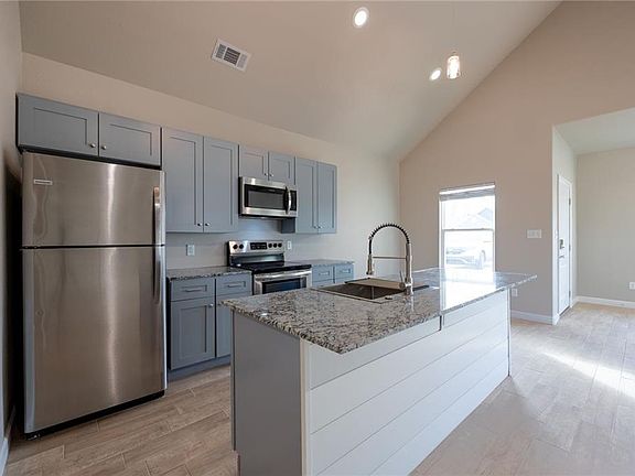 Welcome home to your luxury 3 bedroom 2 bath smart home located in the Valley Oaks Duplex Community in Centerton. These Duplexes have amazing amenities like all wood cabinets with soft close doors, granite countertops, farm style oversized sink, beautiful wood look tile throughout home, garage and driveway parking, Panoramic WIFI enabled keyless entry locks and smart thermostats, lighted vanity mirrors, fenced yard, lawn care included and more. This beautiful walk-able neighborhood is located within walking distance to Bentonville West High School and only a short drive to Downtown Bentonville, restaurants, shopping, I-49 and much more! Monthly $60 WIFI & Technology Fee added at time of lease signing. * Pictures may not be of exact unit available. $40.00 App fee per applicant.
