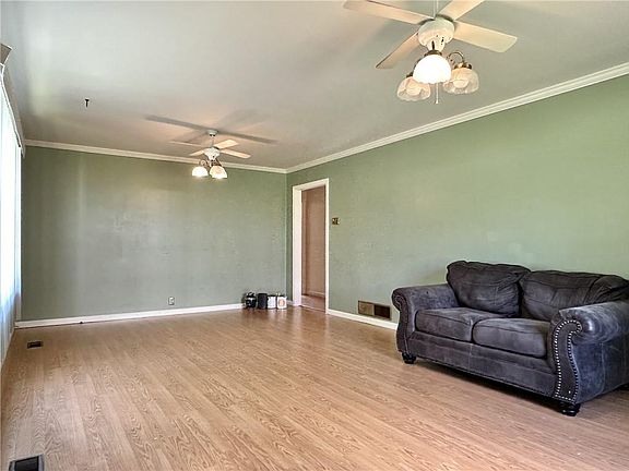 Tucked away at the edge of town, this ranch-style home offers a great blend of space, potential, and value. The main floor features 988 square feet of living space, including a comfortable living room, a functional kitchen with freshly painted white cabinets, and appliances that stay—stove and fridge included. You'll also find two bedrooms and a full bathroom on this level. The basement adds bonus living space with two additional bedrooms, another bathroom, a laundry area, and access to the attached two-car garage. Sitting on nearly half an acre, the property includes a spacious backyard, storage shed, and a covered back deck—perfect for relaxing or entertaining. The home is equipped with a forced air natural gas furnace and a newer central air unit for year-round comfort. With a little TLC, this home is full of potential and priced to sell. Don’t miss this opportunity to make it your own!