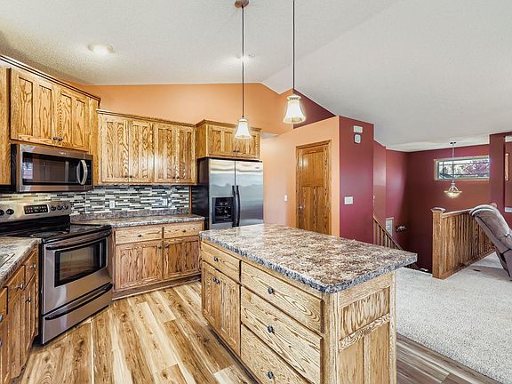 Welcome to a warm and inviting 3-bedroom, 3-bath home with the perfect balance of indoor amenities and outdoor living spaces! Lovingly maintained with rich, vibrant color selections, gleaming natural woodwork, soaring vaults, and a cozy gas fireplace. Custom cabinetry and doors boast stunning woodgrain texture, and the walkout lower-level family room and office/library feature built-in bookshelves. Updates include newer roof, kitchen flooring, dishwasher, microwave, and shelving in the laundry room. Outdoor gathering spaces include a sizeable deck and patio overlooking the generous expanse of a fully fenced yard with apple trees, dedicated garden plot, and irrigation system. Enjoy the open space of the serene wetland providing both privacy and a variety of wildlife. Experience fishing, boating, and tubing on the scenic Rum River nearby. The beautiful city of Isanti checks all the boxes for amenities and services! Nestled into an established neighborhood; paved trails and multiple playgrounds are just steps away. This home is the perfect combination of home and yard, city and country. A short drive to the Twin Cities with a small-town atmosphere. The only thing missing is you!