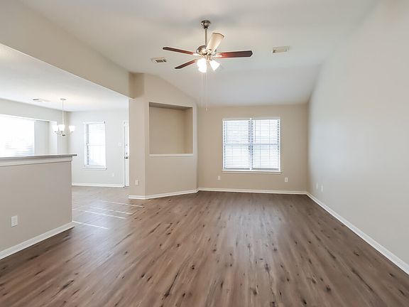You'll love living in this single-story rental home with three bedrooms and two bathrooms in Deer Park, Texas. This 1,510-square-foot smart home features a spacious living room with neutral-colored walls and a lighted ceiling fan. Head into the kitchen to find sleek stainless steel appliances, a double-basin sink, and a large pantry. There's ample space to enjoy meals underneath the chandelier in the dining area, where a back door provides outdoor access. The main bedroom has a vaulted ceiling and attractive wood-look laminate flooring along with two big closets and a private bathroom with a dual-sink vanity. Head outside to check out the pet-friendly fenced yard. Come take your private tour soon!