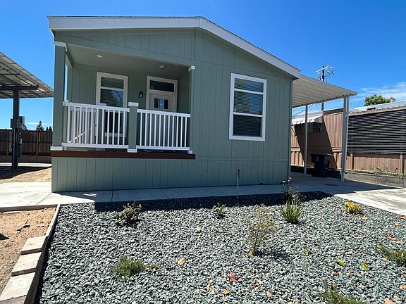 Brand new build in Granite Bay with 3 bedrooms, 2 full bedrooms for under $185,000 - Sounds like an Amazing Black Friday November Deal! Located in the small and quiet 55+ Ridgeview park, near walking trails, lake and shops! This home features a covered front porch, open-floor plan wit large front living room that opens to the amazing kitchen and tucked off to the side a dedicated dining area. The home offers generous size windows for tons of natural light and great views of the park. Down the hall is a laundry room with cabinets, hall bathroom, 2 guest bedrooms, and your large primary ensuite with walk-in closet, tall dual-vanity, linen closet, walk-in shower with seating, more cabinets. Home sits on a corner lot for extra privacy. Adding a fence along left-side of home is negotiable with seller. Park approval is required, monthly space rent is $1,075