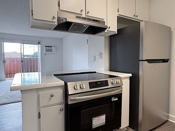 Enjoy a bright living space with a fully equipped kitchen that includes a dishwasher, refrigerator, and stove, along with generous storage throughout.