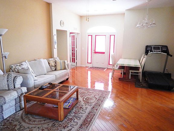 Lovely Kingston model in OTOW Community with unparalleled amenities. This spacious, open floor plan home is on a corner lot in Providence. This home features two large bedrooms and master bath with double sinks. The kitchen opens to family room/eating area. Hardwood flooring, custom window treatments, and new blinds. There is also an energy efficient gas furnace, gas stove, and a Trane high efficiency electrical central A/C. This home was an On Top of the the World Model Home! Located in Ocala's premier gated, active 55+ community, loaded with amenities, including golf cart access to two shopping centers.