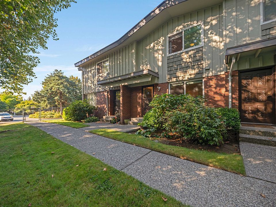 Popular Braemar Garden featuring this beautiful 2 bedroom 2 bathroom plus a large basement recroom Townhouse (approx. 1335 sqft). Many updates in recent years are: Main Bathroom (2021) Vinyl Windows (2016) Hot Water Tank (2024) Awning (2023) Attic Insulation (2021) Updated Flooring in Bsmt entry and laundry room (2020). Enjoy the privacy of a large Patio deck (approx 400 sqft) and the convenience of two carport parking just outside your back door. Amenities include an indoor Pool and Community room. Located in a park-like setting and yet so close to the Lougheed Town Center, Costco, Skytrain, Restaurant and shops. Easy access to SFU. Extremely well ran complex with pro-active council. Don't miss this one, Hurry!