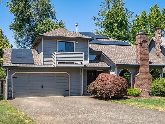 This single owner custom built home from 1986 has been beautifully maintained, updated & loved throughout the years. 0.3 miles to Fanno Creek Park & trailhead. Tall vaulted ceilings as you enter the home with gorgeous floor to ceiling arched windows in the front living room. The home has a formal dining room as well as a casual dining area off the kitchen with bay windows overlooking the gorgeous backyard. The mature landscaping & foliage creates complete privacy on the back deck which is perfect for when you're hot tubbing in the built in hot tub, or enjoying a meal on the back porch. Large home office with double glass sliding doors is perfect for those who work from home but need some privacy away from the bedrooms. Finished basement bodes large bonus room area as well as a work shop! Basement has an exterior entrance that leads to the side yard. Driveway is large enough for 38' RV, and has 30amp RV hook up. Large dry storage area off 3rd bedroom upstairs (12x10') as well as below kitchen (17x12'). Solar panels installed 9/2022. Located on 0.22 acres, in a well established neighborhood with great schools. Close to Downtown Tigard, filled with restaurants, pubs, coffee & much more!