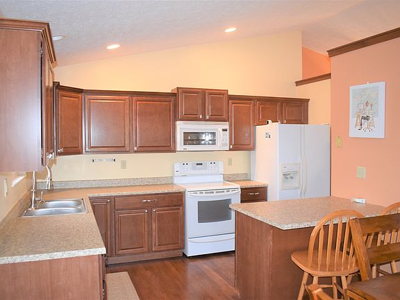 - Kitchen Features: Wood Cabinets, Ceramic Tile, Wood Floors, Counter Bar