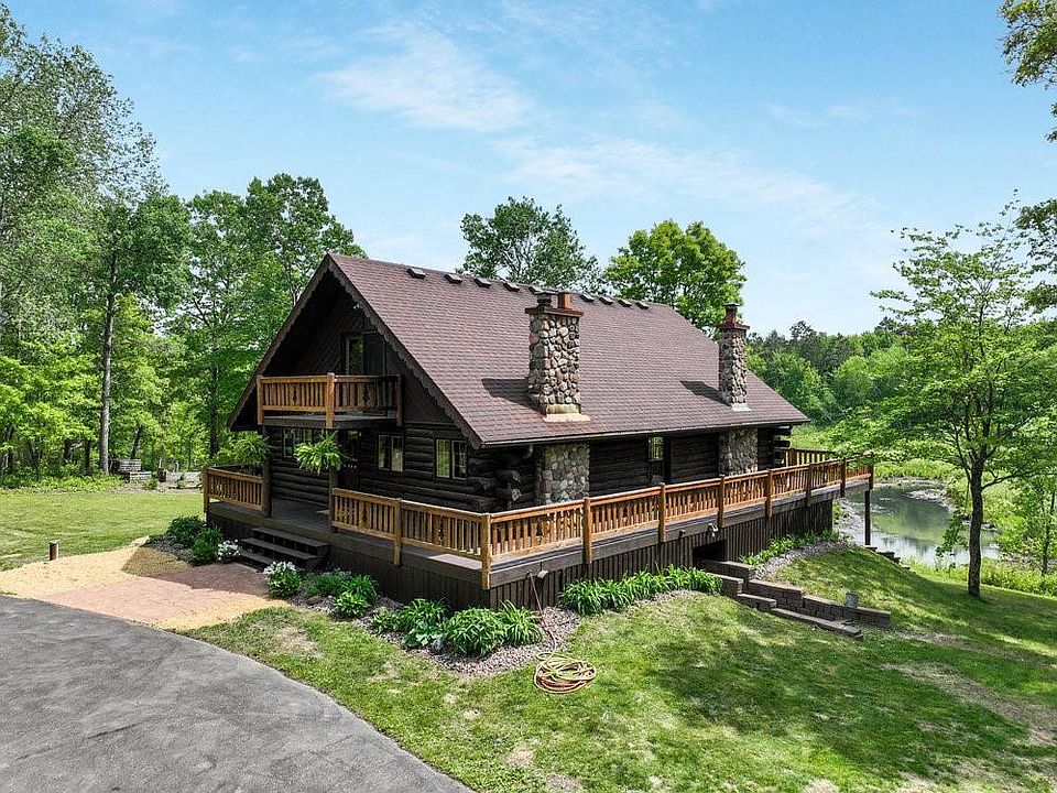Nestled amidst the stunning natural beauty of the Northwoods, this enchanting log home is situated on a private 10-acre property, complete with a meandering creek & captivating views. The handcrafted log construction of the home exudes rustic elegance, creating a warm & inviting atmosphere that harmonizes perfectly with its surroundings. Inside, the spacious and cozy living spaces feature high ceilings, exposed beams, & large windows that frame the picturesque views. The heart of the home boasts a well-appointed kitchen & open concept living space. With four bedrooms and 2 baths, this home offers lots of space & tranquility. A large 3 car garage provides ample room for storage & parking & includes unfinished loft space. Many recent updates include kitchen/living remodel, new flooring, central air & much more. The acreage is adjacent to public park service land for add'l exploration. Embrace the idyllic log home lifestyle in this remarkable retreat located only 10 minutes from Hayward.