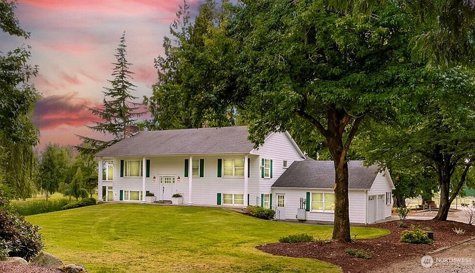 Step into a world of luxury and country charm. Built for work & play, this home on 5 acres blends comfort and functionality. Multiple living spaces, 4 beds plus an office, and 2.5 baths make it perfect for multi-generational living or a home business. Expansive windows fill the interior with light, showcasing a brand-new kitchen with quartz countertops, custom cabinets, all-new appliances, new carpet, fresh paint and siding, a new HVAC, and a 720sqft garage. Outside, a wrap-around driveway, 4-stall horse barn, fenced pastures, lush grounds with sprinklers, a heated pool, and hot tub complete this retreat. There’s a magic here that words can hardly capture; sunsets, starry nights, and golden afternoons feel like a dream come true.