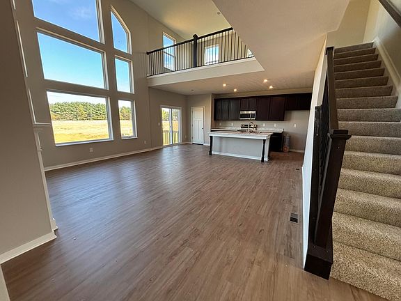 Spacious islandHuge loft areaOpen-concept layoutHigh-end finishesFull basementIron stair railsDramatic wall of windows