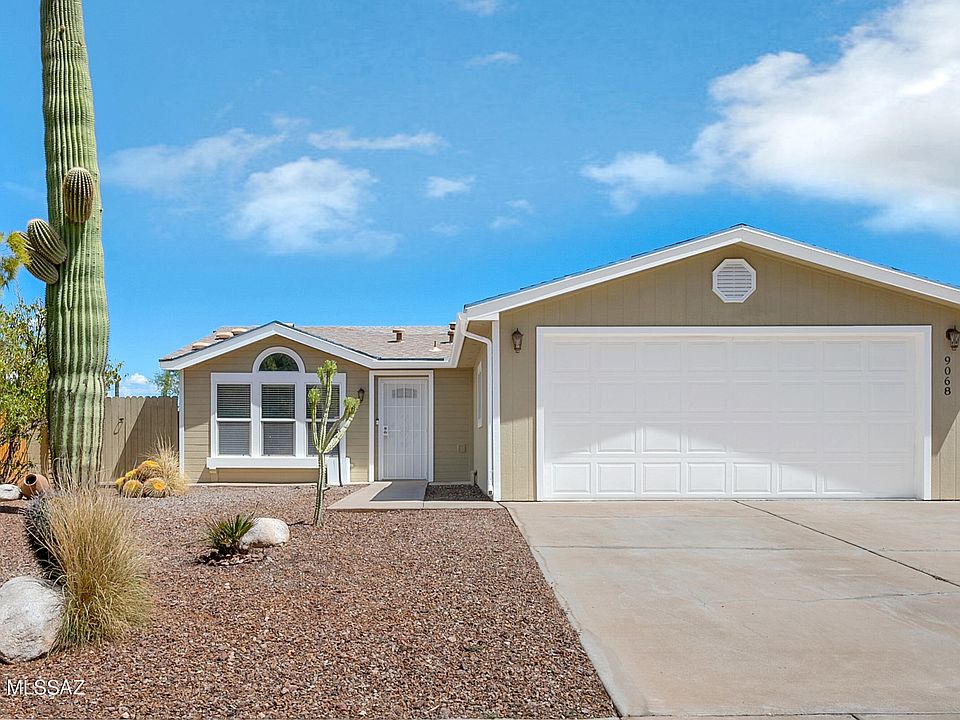 Move-In Ready Gem in Continental Ranch - Priced at $285,000! Welcome home to this immaculate 3-bedroom, 2-bath residence offering 1,600 sq. ft. of beautifully updated living space in the highly sought-after community of Continental Ranch. With every detail thoughtfully remodeled, this home is the definition of turnkey--no updates needed, just move in and start enjoying! Step inside and be greeted by vaulted ceilings that open up the dual living areas, filling the home with natural light and creating an inviting sense of space. Fresh interior and exterior paint, all-new baseboards, and updated flooring throughout give this home a modern, cohesive look. Plush new carpet in the bedrooms and living areas provides warmth and comfort, while durable vinyl in the kitchen, entry, and laundry areas ensures style and function where you need it most. The kitchen is a dream, boasting freshly painted cabinets with soft-close hinges, updated lighting, and stainless steel appliances that convey with the home. Meal prep is effortless, and entertaining is a delight in this functional and stylish space. Both bathrooms have been fully updated with modern finishes, including new tile, sleek white vanities with marble-style countertops, stainless fixtures, and quiet vent lighting. The primary suite offers a spa-like retreat with dual marble sinks, a walk-in shower with marble walls, new doors, and a convenient fold-down seat. Step outside to your private backyard and enjoy the expansive 48x10 covered patio, perfect for gatherings or simply soaking in the mountain views. A fully wired 10x20 storage shed with concrete floors, lighting, outlets, and shelving provides endless optionswhether you need a workshop, hobby room, or extra storage. This home is also equipped with a whole-house water filtration system, water softener, and dual-pane energy-efficient windowsensuring comfort, quality, and long-term savings. Nestled in a walkable, friendly neighborhood, you'll love the convenience of being minutes from local dining, grocery stores, the Tucson Premium Outlets, and just a quick 5-minute commute to I-10 for easy access across the city. With every detail already taken care of, this home truly has all the bells and whistles. Don't miss your chance to make this Continental Ranch beauty your new address! Schedule your private showing today and come see why this move-in ready home is the perfect fit for you.