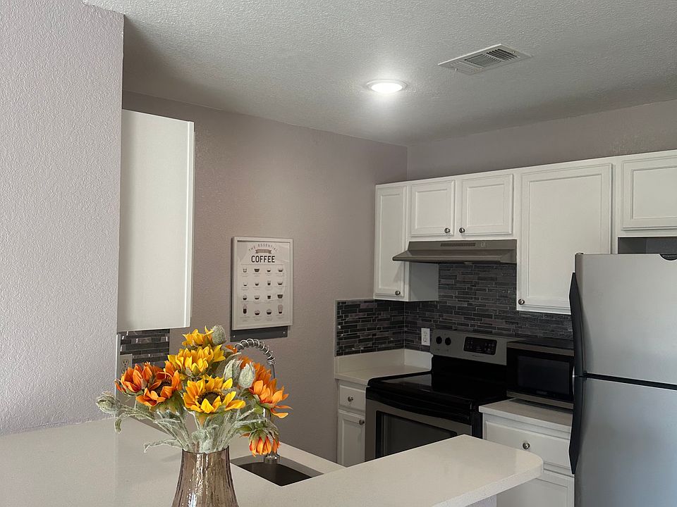 RESORT STYLE LIVING! Newly renovated, quartz counters, new floors, fresh paint, dishwasher, washer and dryer in unit and lots of sunlight throughout. This beautiful East Orlando community puts you close to everything you need, yet boasts a secluded, tranquil, manicured property. Community amenities include a fitness center, community pool/spa, clubhouse, on-site property manager, indoor basketball court and two tennis courts! Located just minutes from Orlando International Airport with easy access to downtown Orlando, Lake Nona/Medical City, major highways and plenty of local shopping and dining. The condo has new A/C unit installed in 2022, in-unit washer and dryer, fresh paint and hardwood floors.