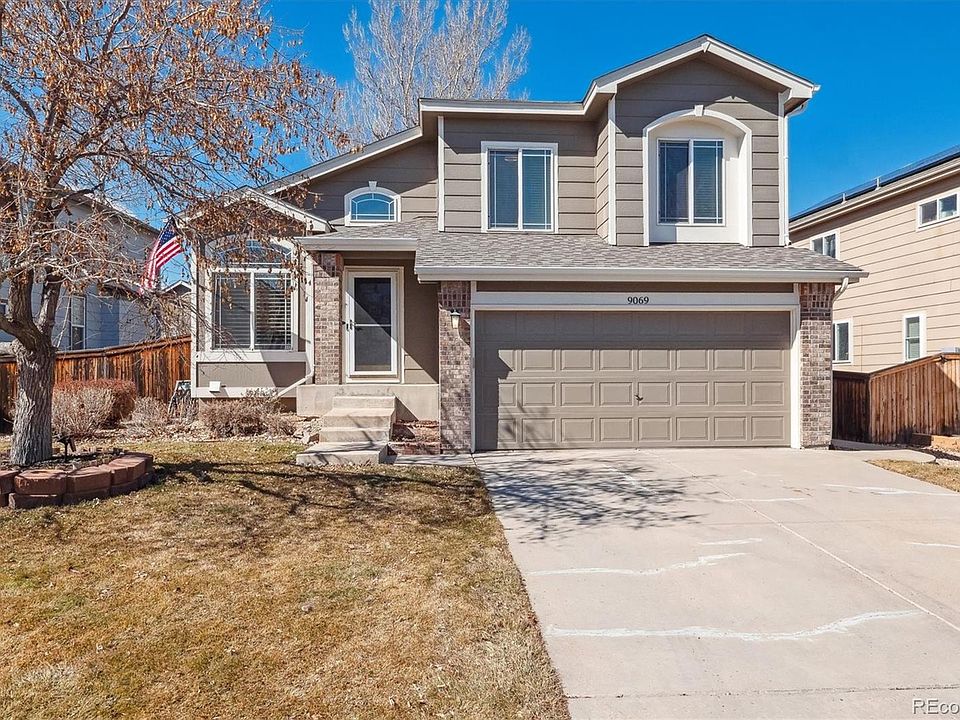 Welcome to 9069 Renoir Drive! This immaculate home is located in the heart of Providence Center! Pride of ownership exudes throughout this incredibly well cared for residence! Upon entering you’ll immediately notice the stunning hardwood flooring and open layout…perfect for entertaining! The living room has a large picture window, allowing natural light to fill the main floor. The kitchen features custom painted cabinets, stainless appliances, and granite countertops. The family room is adjacent to the kitchen and is highlighted by a lovely gas fireplace and sliding glass door that leads to the back patio. The second floor has 3 bedrooms and 2 baths. The primary has vaulted ceilings and a large walk-in closet. The primary bathroom has been remodeled with granite counters and an incredible walk-in shower! The basement has a large finished space, perfect for a home office or additional entertaining/flex space! The backyard has mature trees and privacy for those evenings at home with family and friends. Additional updates include new custom shutters on the main floor, newer sliding glass door to the back patio, newer stainless appliances in the kitchen, brand new roof in 2024 and new carpet on the second floor in 2024. This home is conveniently located with easy access to C-470 and University. Close to restaurants, shopping and grocery stores. Neighborhood park is just around the corner and there are numerous walking, biking trails to enjoy! This home has it all!