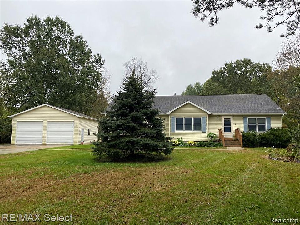 Nice large 1580 sqft open floor plan home on 2 acres in Flushing. All of the kitchen appliances stay. The homes has a giant two car detached garage with extra tall garage doors, three wide concrete parking out front and electricity inside. The home is a split ranch with a master with a master bathroom. The living room has a gas stone fireplace. The kitchen is a L shape with tons of cabinets. The laundry/mud room is on the frist floor when you come in the side door. The home has a full unfinished basement. The Appraisal says stick built but it is a modular. Highest and best due 10-6-21 at 1:00