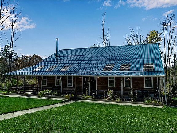 Welcome to 9069 W Hill Rd! Sitting on 38 acres, this year round home has central heat and a/c as well as wood stove to keep you comfortable. Large kitchen with ample storage features granite countertops and stainless steel appliances. Convenient first floor primary bedroom with walk-in closet, access to full bath and sliding doors to the wrap-around covered porch. Upstairs loft area provides two additional bedroom spaces, 1/2 bath, huge walk in closet and additional storage along both sides of walls. Enjoy sitting on wrap-around porch overlooking 38 wooded acres and 3 ponds. Feed Koi fish from the dock on the large pond. Trails on property allow for walking, ATV or snowmobile riding. Extra large 24x40 pole barn provides plenty of storage. Panel for generator hook up on side of garage w/generator included. Deer stands and hunting hut on property included. Allen Lake and state land for hunting/fishing just a short distance away. This is an outdoorsman's dream!